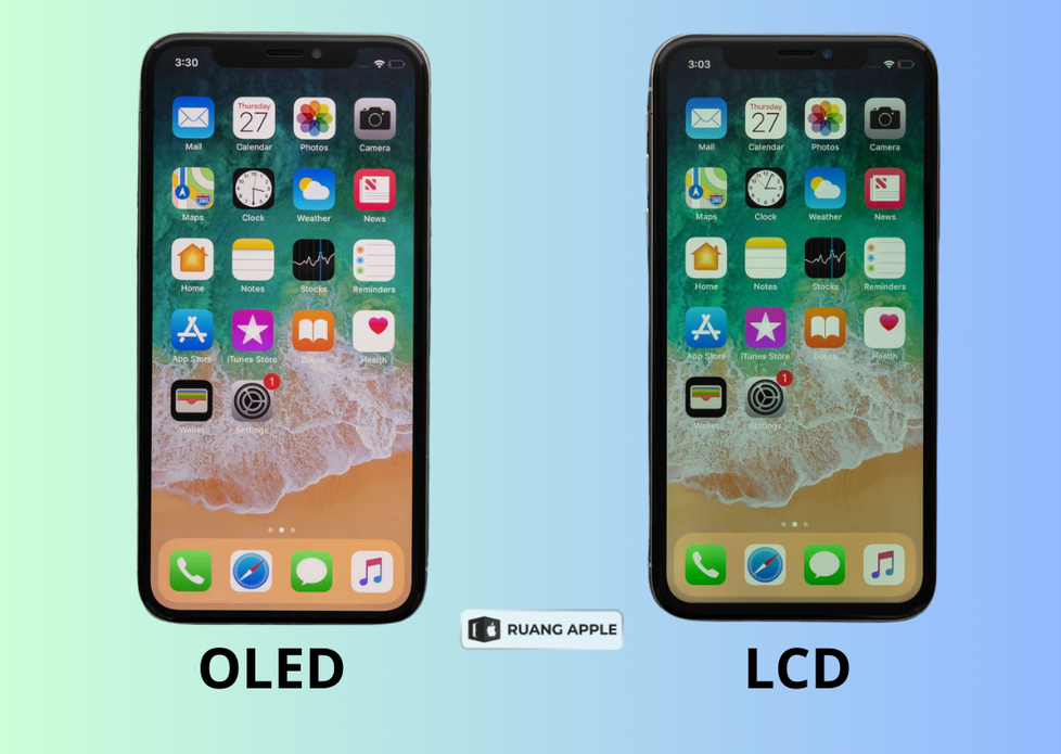 Teknologi OLED merupakan lompatan besar yang mulai diperkenalkan pada seri iPhone X dan kini menjadi standar pada seri iPhone 12 hingga iPhone 16 terbaru. Berbeda dengan LCD, layar OLED tidak membutuhkan lampu latar tambahan. Setiap titik cahaya atau piksel pada layar OLED bisa menyala dan mati secara mandiri.